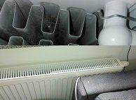 Sehen sie sich die Bilder etwas genauer an, die gewünschte Zugluft im Plattenheizkörper transportiert auch den Staub mit und dieser bildet Stück für Stück dicke Fusseln. Grundprinzip Konvektion, Fusseln beeinträchtigen diese aber.